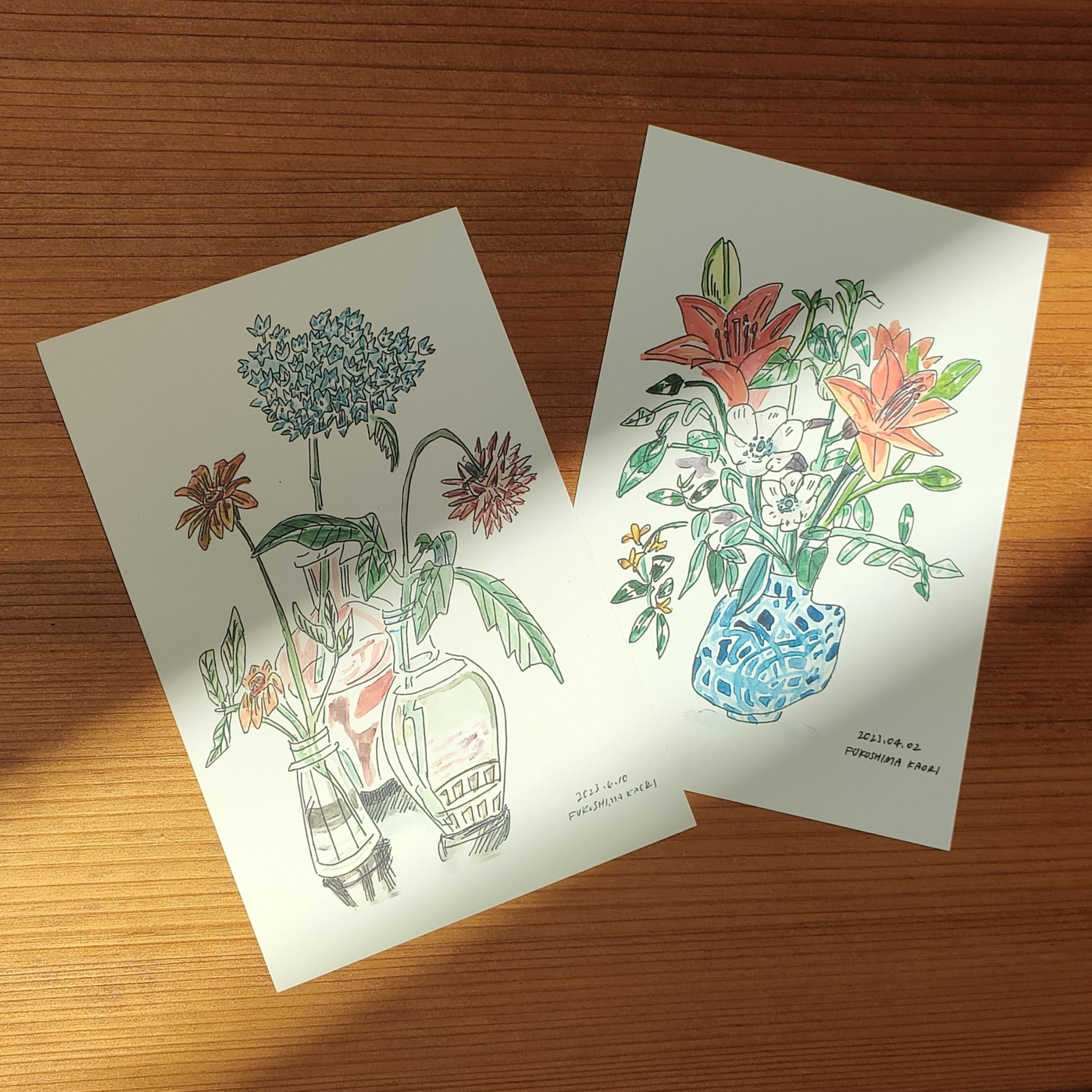 「徒然ガーデン ハガキ4枚セット」は、美しい花々をモチーフにした水彩イラストのポストカードです。